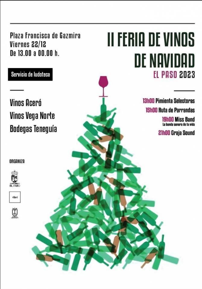 El alcalde de El Paso, Eloy Martín, invita a “vecinos y visitantes a participar de este encuentro que consolidamos en la programación navideña y vuelve para ofrecernos una estupenda combinación de aromas, sabores y sonidos. El propósito de esta iniciativa es visibilizar al sector primario, reconocer el trabajo de nuestros viticultores y seguir concienciando a la población sobre la importancia de consumir los productos de nuestra tierra”.