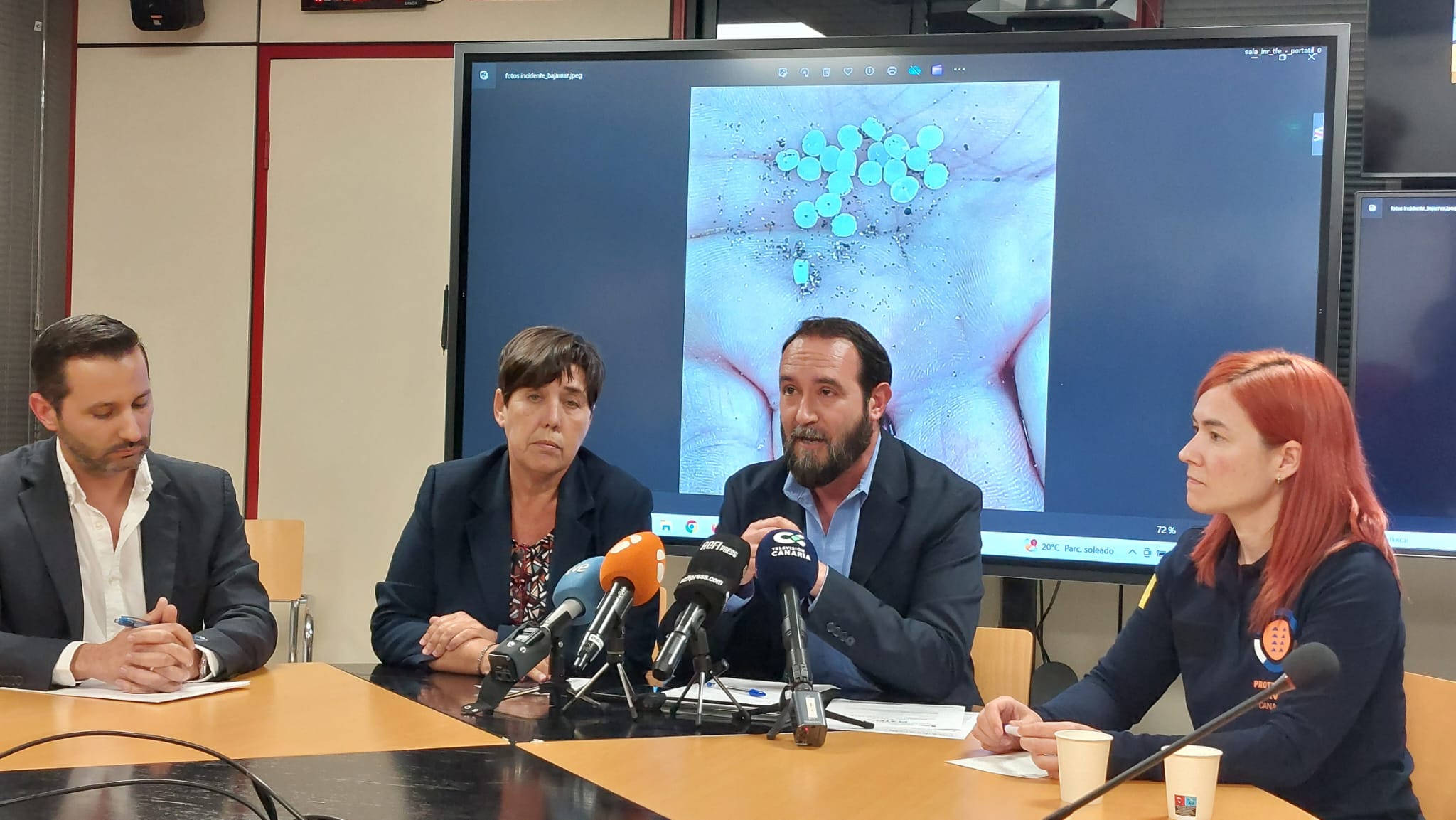 En la comparecencia ante los medios de comunicación, el viceconsejero estuvo acompañado por la consejera insular de Emergencias del Cabildo de Tenerife, Blanca Pérez, la jefa del Servicio de Protección Civil y Atención de Emergencias, Montserrat Román, y el catedrático de Química Analítica de la ULL, Javier Hernández Borges.