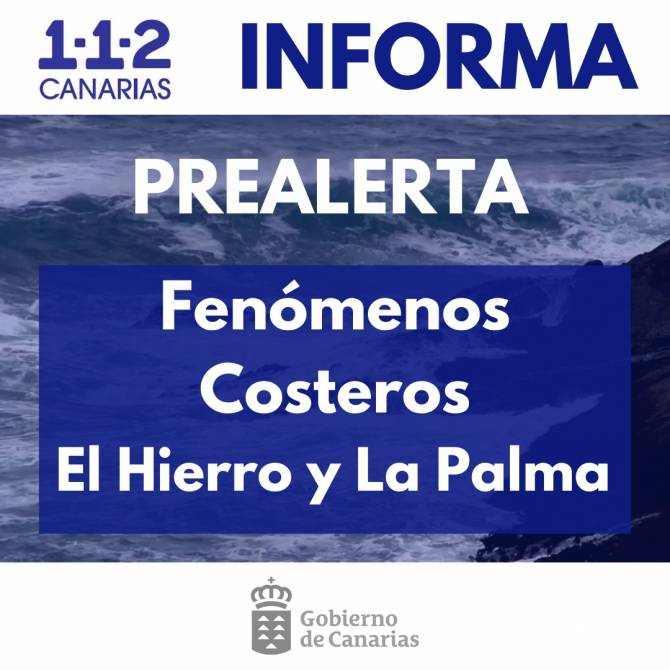 El Gobierno de Canarias, a través de la Dirección General de Emergencias, declara la situación de prealerta por fenómenos costeros en las islas de El Hierro y La Palma, a partir de las 03:00 horas, del martes 16 de enero.