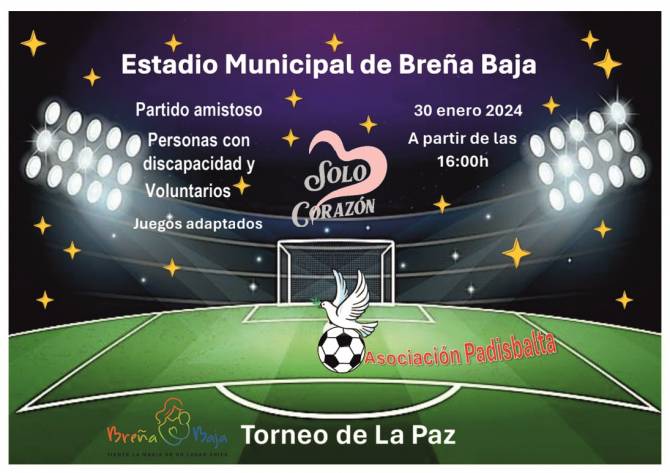 La Asociación Padisbalta organiza su séptimo Torneo de Fútbol para el lunes 30 de enero (Día de La Paz), a las 16 hs en el Estadio Municipal de Breña Baja en San José. Colabora el Ayuntamiento de Breña Baja y esta abierto a todas las personas que quieran participar de esta actividad, “Voluntari@s de Corazón”.