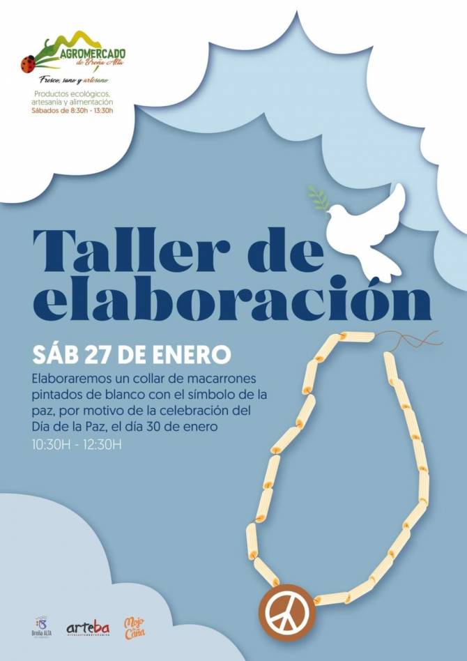 Los niños y niñas que visiten el Agromercado elaborarán collares de macarrones pintados de blanco, para conmemorar así el Día Mundial de La Paz. Esta actividad se une a las ya realizadas por los colegios del municipio para celebrar esta festividad.