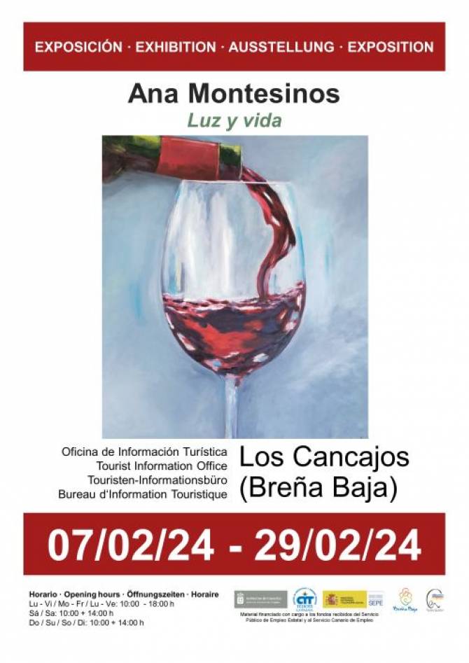 Del 7 al 29 de febrero la Oficina de Información Turística de Los Cancajos acoge la Exposición de pintura al óleo “Luz y vida" de Ana Montesinos en los horarios de apertura de la oficina. Con la colaboración del Ayuntamiento de Breña Baja, el Cit Tedote, entre otras entidades.