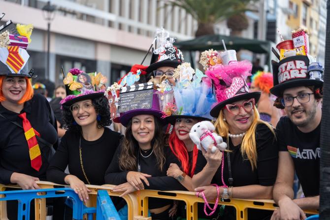 Con formas ingeniosas, colores fluorescentes y atrevidos complementos, las pelucas y 'pelucones' tomaron las calles de Santa Cruz de La Palma donde no hubo lugar ni tiempo para el aburrimiento.