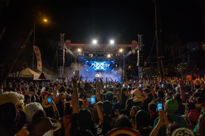 La Gran Fiesta del Carnaval de este sábado organizada desde la concejalía de Fiestas del Ayuntamiento de Santa Cruz de La Palma, coordinada por Raico Arrocha, arrancó a las 17:00 horas con el festival de música urbana de La Palma Blue Experience con La Diabla, Dj Conjuren, J. Beren y La Pantera.