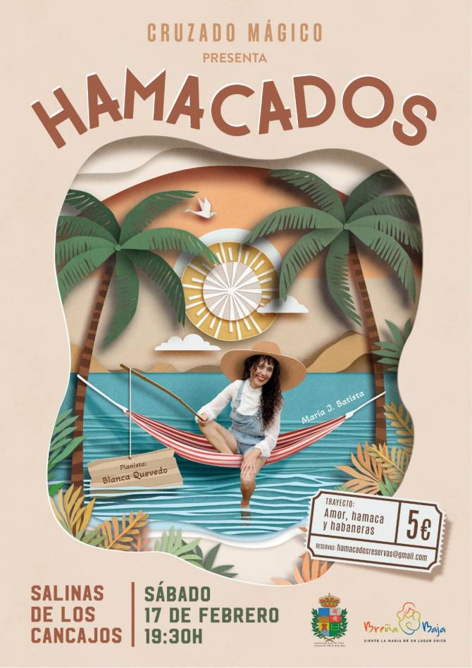 En el entorno paisajístico y patrimonial de las Antiguas Salinas de Los Cancajos se presenta, el sábado 17 de febrero a las 19:30 hs, el nuevo espectáculo de Cruzado Mágico, “Hamacados”.