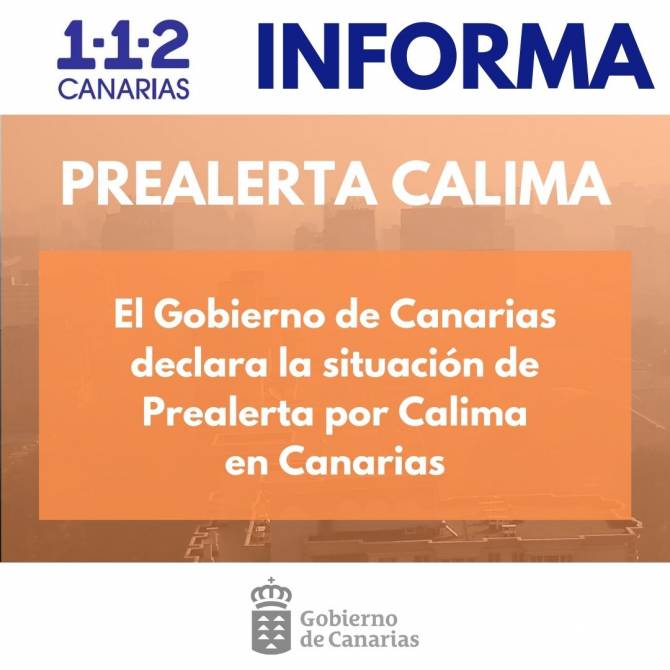 El Gobierno de Canarias, a través de la Dirección General de Emergencias, declara la situación de prealerta por calima en la comunidad autónoma de Canarias, a partir de las 19:00 horas de hoy, domingo, 18 de febrero.