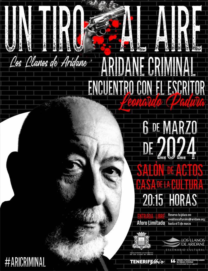 El Ayuntamiento de Los Llanos de Aridane continúa con la programación del encuentro de novela negra y policíaca Aridane Criminal. Para el miércoles, 6 de marzo, a las 20:00 horas, en el salón de actos de la Casa de la Cultura, está prevista la inauguración del coloquio Un tiro al aire, con el reconocido escritor cubano Leonardo Padura.