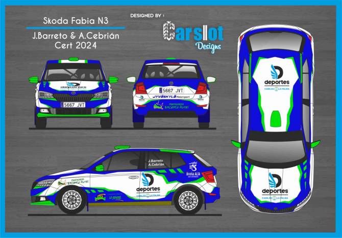 El equipo de Jonathan Barreto y Ainhoa Cebrián cuenta con el apoyo de la Consejería de Deportes del Cabildo de La Palma, los ayuntamientos de Puntagorda, Breña Alta y Garafía, así como Holiday Rental, Centro Astronómico Athos, #MeQuedoEnLaPalma y Jyväskylä Motorsport.