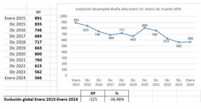 Breña Alta reduce su tasa de desempleo un 36,48% en los últimos años