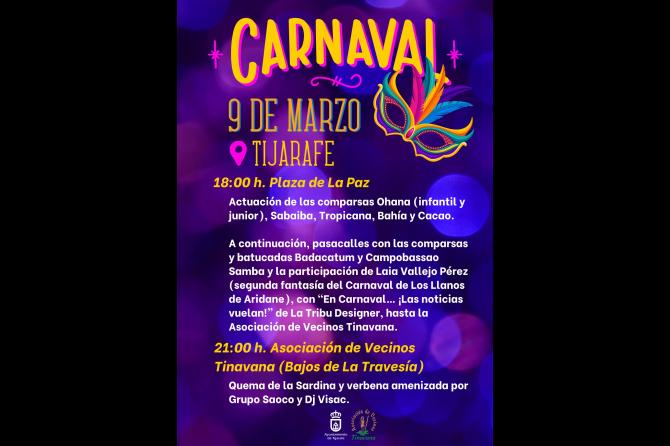 El Ayuntamiento de Tijarafe, en colaboración con la Asociación de Vecinos Tinavana, ultima los detalles de su Carnaval, que se celebrará el próximo 9 de marzo.