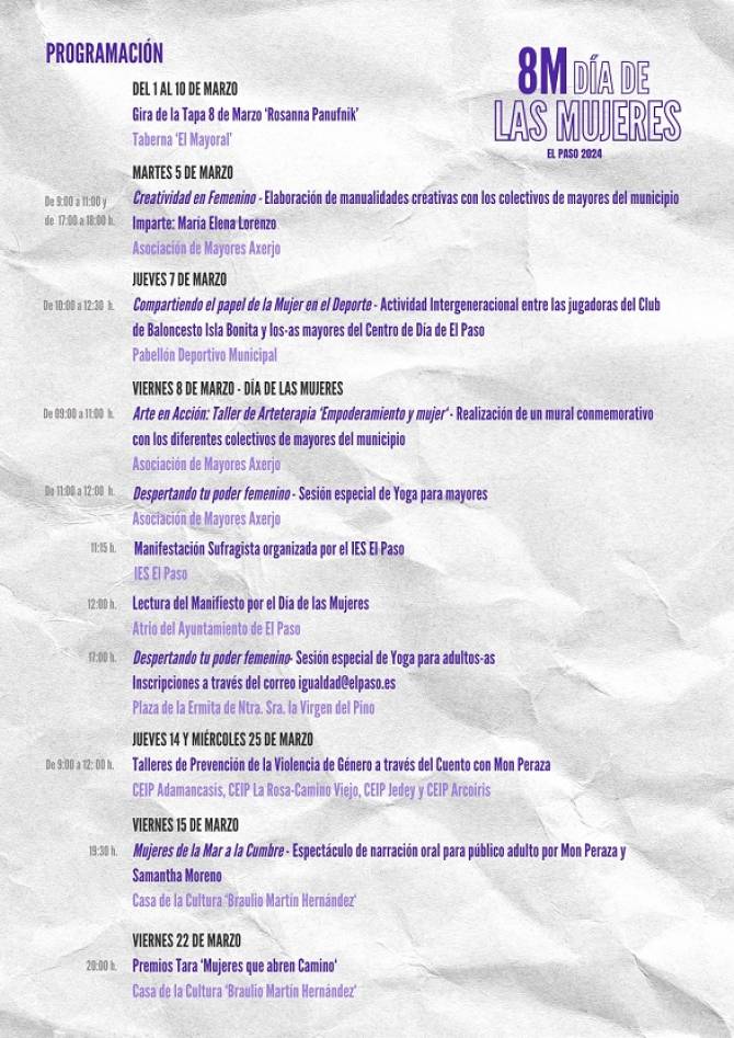 El Paso conmemora el 8M con un programa dirigido a divulgar y reconocer el papel de las mujeres en la comunidad