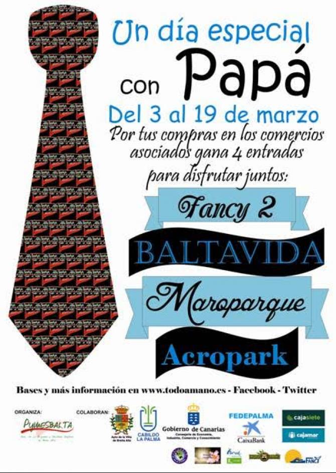 Con motivo del Día del Padre, Pymesbalta ha organizado una campaña comercial para pasar 'Un día especial con papá'. La Asociación de la Pequeña y Mediana Empresa de Breña Alta en colaboración con el Ayuntamiento quiere premiar a los clientes que hagan sus compras en Breña Alta entre el día 3 y el 19 de marzo.