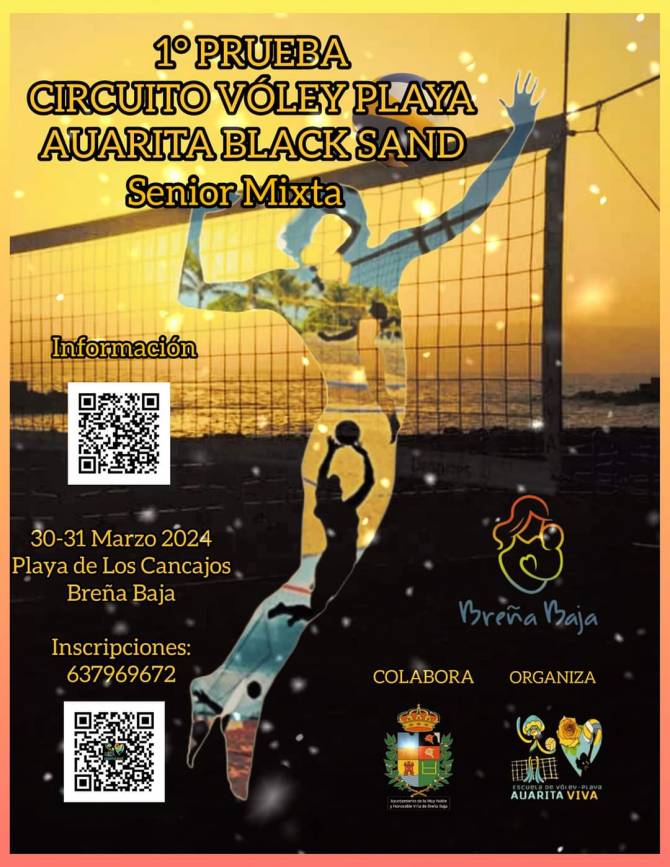 Será para la categoría Senior Mixta en la Playa de Los Cancajos. Organiza el Club de Voley “Aurita Viva” y colabora la Concejalía de Deportes del Ayuntamiento de Breña Baja.