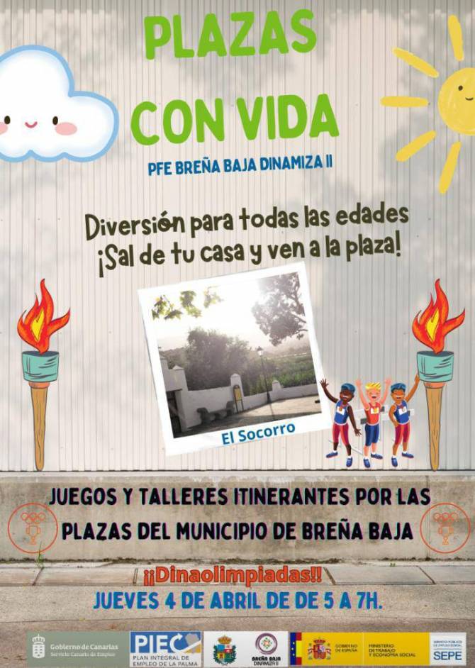 El jueves 4 de abril tendrá lugar la próxima edición de “Plazas con Vida” en la Plaza de El Socorro con la actividad “DinaOlimpiadas”