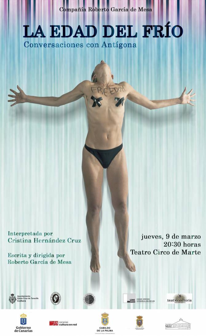 La edad del frío. Conversaciones con Antígona es una representación escrita y dirigida por Roberto García de Mesa, en la que la actriz Cristina Hernández Cruz pone voz a una reflexión sobre la mujer en Europa y sobre el daño que producen los fundamentalismos religiosos y políticos y la violencia machista. Un poema escénico sobre las utopías europeas, sobre la vida y la muerte, sobre los debates necesarios, las diversas formas de crisis y el papel que ocupan los sentimientos en todo ello, sobre el desencanto de la política, el papel de Europa, la situación de la libertad de expresión en nuestros días, la intolerancia, la corrupción, el canibalismo del sistema, y todo ello expresado con un lenguaje escénico que se proyecta sobre muy diversas formas, dando como resultado una obra de teatro total.