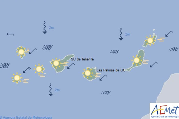 Habrá mar de fondo del Noroeste con olas de dos a tres metros. En la costa Suroeste será variable 2 y marejadilla.