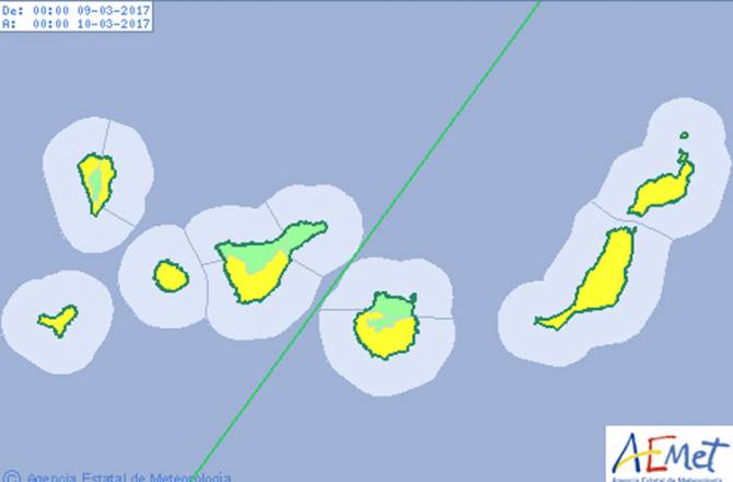 La Agencia Estatal de Meteorología ha activado para la jornada de este jueves el aviso amarillo en prácticamente todo el Archipiélago por polvo en suspensión.