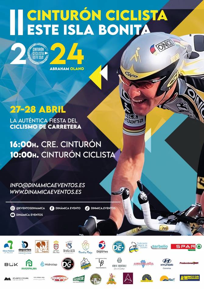 El Ayuntamiento de Villa de Mazo colabora en el desarrollo de la segunda edición de la prueba Cinturón Ciclista Este Isla Bonita, que se desarrollará del 20 al 28 de abril en las cuatro localidades de la comarca este de La Palma. El evento está organizado por Dinámica Eventos La Palma y la Federación Canaria de Ciclismo y cuenta con la implicación del doble campeón del mundo Abrahán Olano.