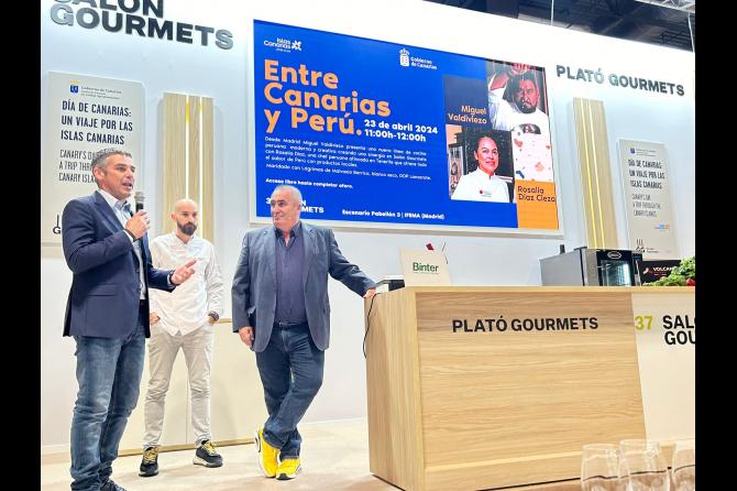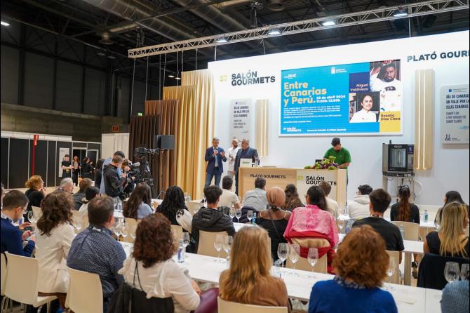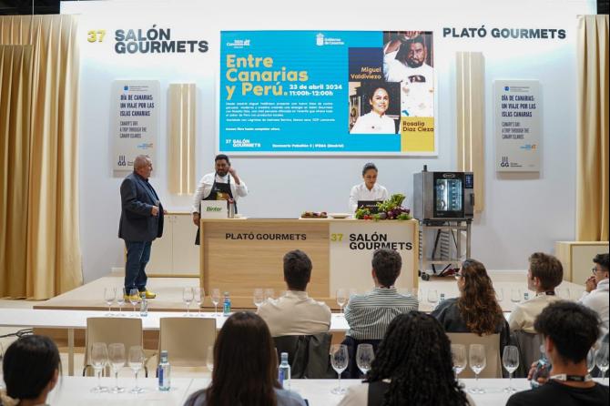 Con el objetivo de poner en valor las excelencias de los productos agroalimentarios de las islas, el Gobierno de Canarias ofrece hoy martes, 23 de abril, en el marco del Salón de Gourmets, en Madrid, un viaje gastronómico a cargo de reconocidos chefs, productores, sumillers y divulgadores, con el que se busca conquistar los paladares más exigentes de los visitantes a este evento, considerado el más potente del sector de la alimentación y bebidas de alta calidad de Europa.