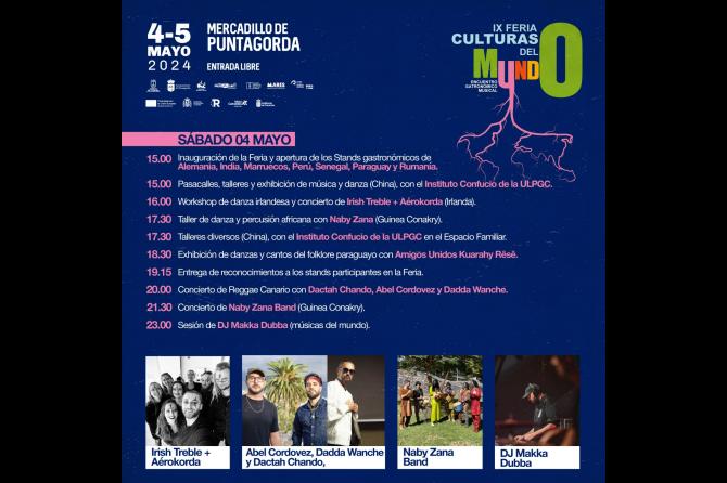 La IX edición de la ‘Feria de las culturas del mundo’ despliega más de una treintena de actividades el fin de semana del 4 y 5 de mayo con la participación de 19 países. El encuentro, organizado por el Ayuntamiento de Puntagorda, se consolida como uno de los foros gastronómico, musical y sociocultural más importante de La Palma por la suma de las tradiciones de una veintena de territorios de cuatro continentes del mundo.