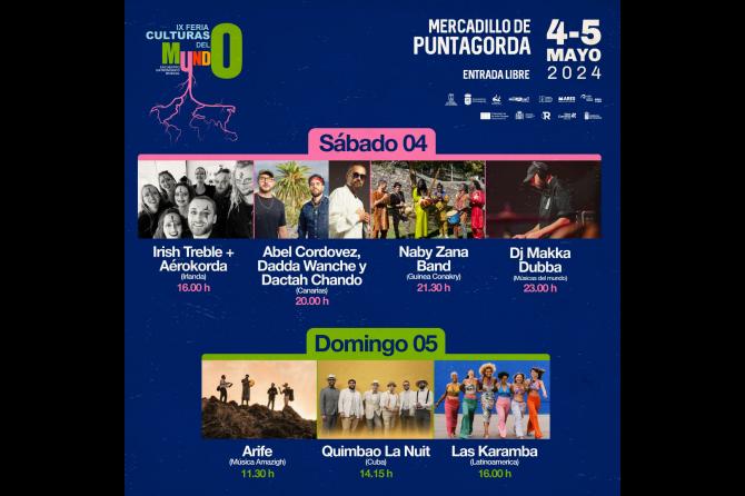 Música, danza y un amplio abanico de actividades culturales arrancan este sábado 4 de mayo en el Mercadillo del Agricultor de Puntagorda, en una cita que el alcalde, Vicente Rodríguez, explica como “una oportunidad de conocimiento de otras culturas y un espacio de convivencia que cada año cobra mayor importancia desde un objetivo compartido: la promoción socioeconómica y el respeto entre iguales desde la interculturalidad”. “La Feria de las Culturas del Mundo se ha convertido en parte indispensable de nuestra oferta de cultura y ocio”.