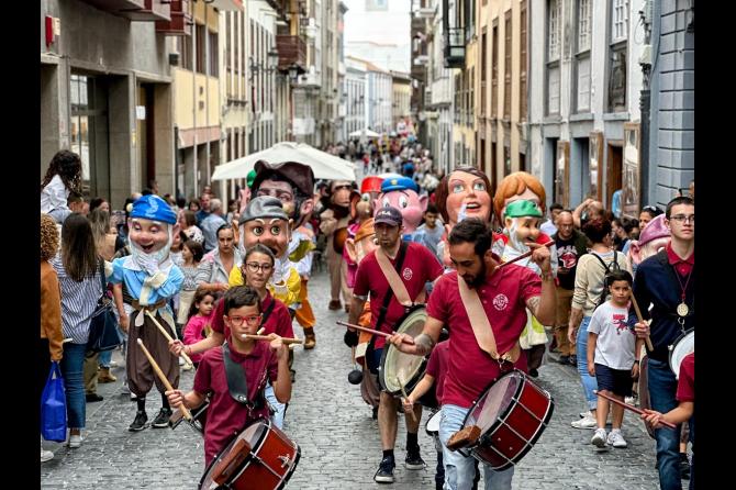 Esta divertida comitiva partió desde el recinto portuario hasta llegar a la plaza de San Francisco, compuesta por medio centenar de figuras y personajes que son ya iconos de la imaginería festiva de la capital palmera.