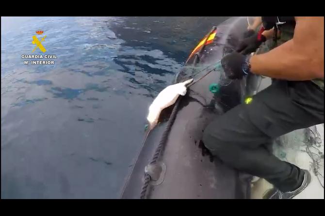 La Guardia Civil extrae del mar 400 metros de redes tipo enmalle colocadas ilegalmente con más de 17 kg de pescado en Tazacorte