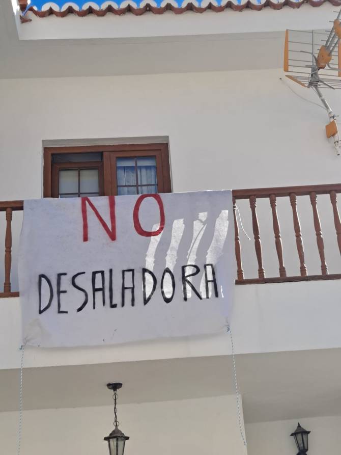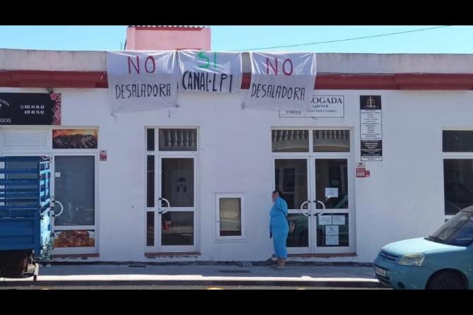 El rechazo vecinal a la planta de desalación de agua marina que proyecta el Ayuntamiento de Fuencaliente crece día a día y ya se manifiesta en forma de pancartas colocadas desde el pasado fin de semana en fachadas de viviendas con la consigna "Desaladora no; sí canal LP-1".