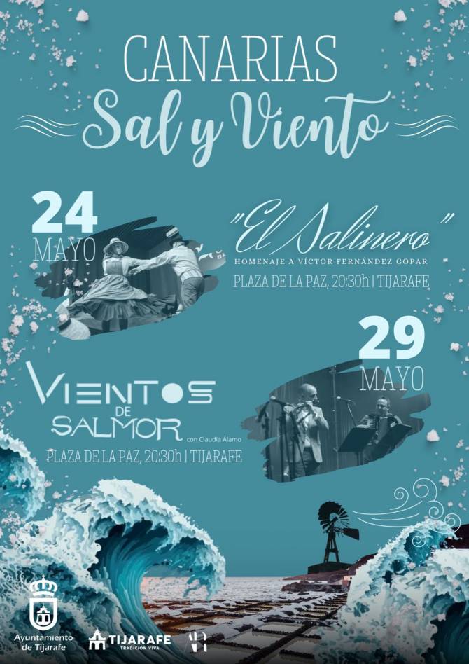 “El Salinero”, homenaje a Víctor Fernández Gopar, será el primer espectáculo que acogerá la Plaza de La Paz, el 24 de mayo a las 20:30 horas, en el cual se podrá encontrar música, literatura, baile y narrativa. Se trata de un tributo al “Salinero” y a su isla de Lanzarote a través de su folclore, sus coplas, su vestimenta y su danza transversal. Un elenco de ocho personas en escena y cinco músicos en directo, cuyo espectáculo narra la vida de Víctor Fernández Gopar -poeta español nacido en Las Breñas (Lanzarote) en 1844 y fallecido en Yaiza (Lanzarote) en 1920, que fue maestro salinero de Las Salinas de Janubio-, en la voz de Ernesto Rodríguez Abad, materializando las coplas del “Salinero” en las voces de Ayla Rodríguez y Mateo Felipe, que cantan y bailan simultáneamente en una representación integral del folclore canario.