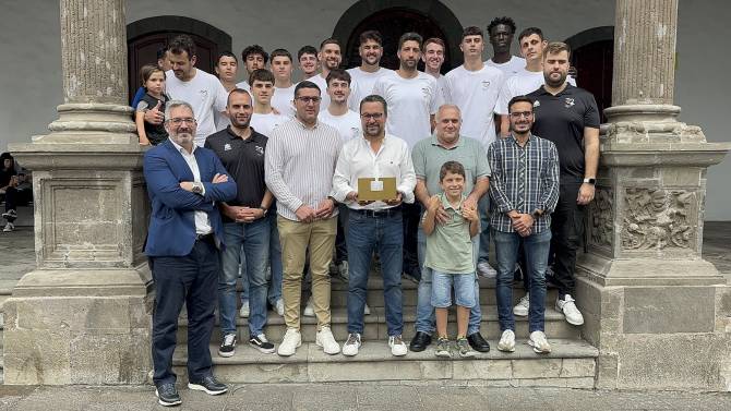 El alcalde de la capital palmera, Asier Antona, junto al edil de Deportes, Jesús Pérez, y el primer teniente de alcalde, Raico Arrocha, felicitaron tanto a los jugadores como al cuerpo técnico durante la recepción ofrecida en el salón de plenos de la Corporación, trasladándoles la enhorabuena de parte del resto de la Corporación Municipal.