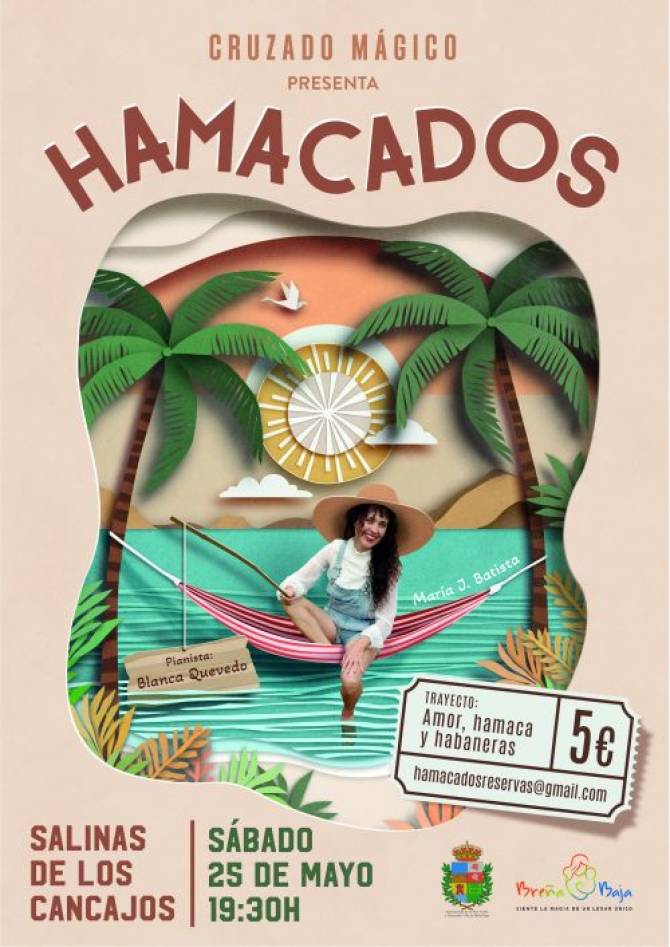 Las Antiguas Salinas de Los Cancajos es el espacio que acoge un espectáculo teatral con bastante "chispa" y mucha "sal": Hamacados, de la Compañía de Teatro Cruzado Mágico. El sábado 25 de mayo a las 19:30 h. será la nueva fecha y oportunidad de disfrutarlo. Contando con el apoyo del Ayuntamiento de Breña Baja.