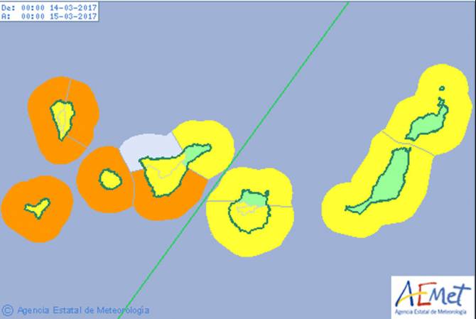 El viento soplará del Nordeste fuerte, más intenso en El Paso y puntas sureste y noroeste en donde las rachas alcanzarán los 70 kilómetros por hora durante la madrugada. A partir de primeras horas tendencia a disminuir a moderado, más intenso en las mismas zonas, en donde continuarán las rachas aunque por debajo de los 60 kilómetros por hora.