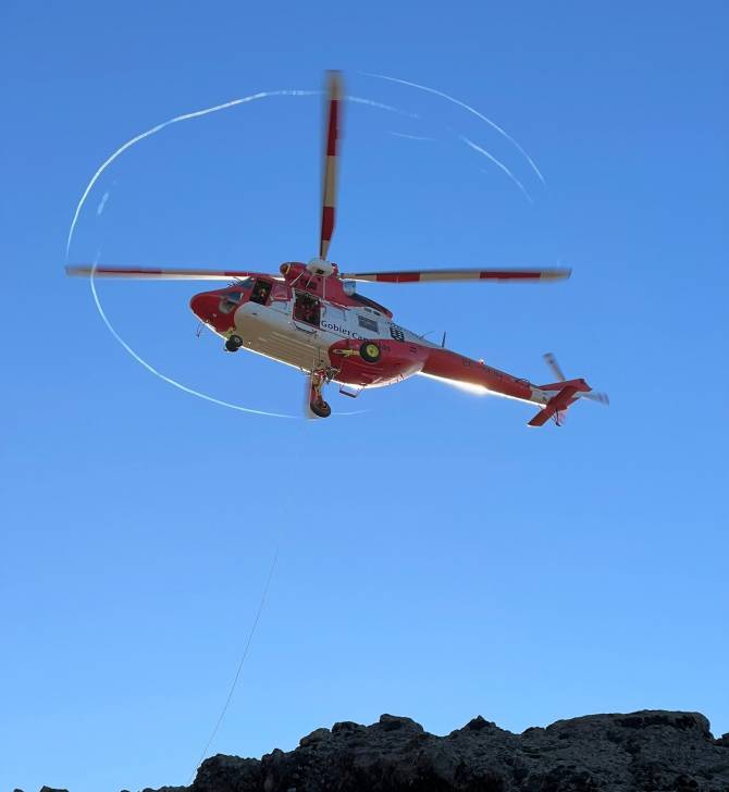 El helicóptero del GES rescató esta tarde a una mujer de 42 años que sufrió un traumatismo en miembro inferior de carácter moderado al caer en un sendero en la Caldera de Tabueriente de La Palma