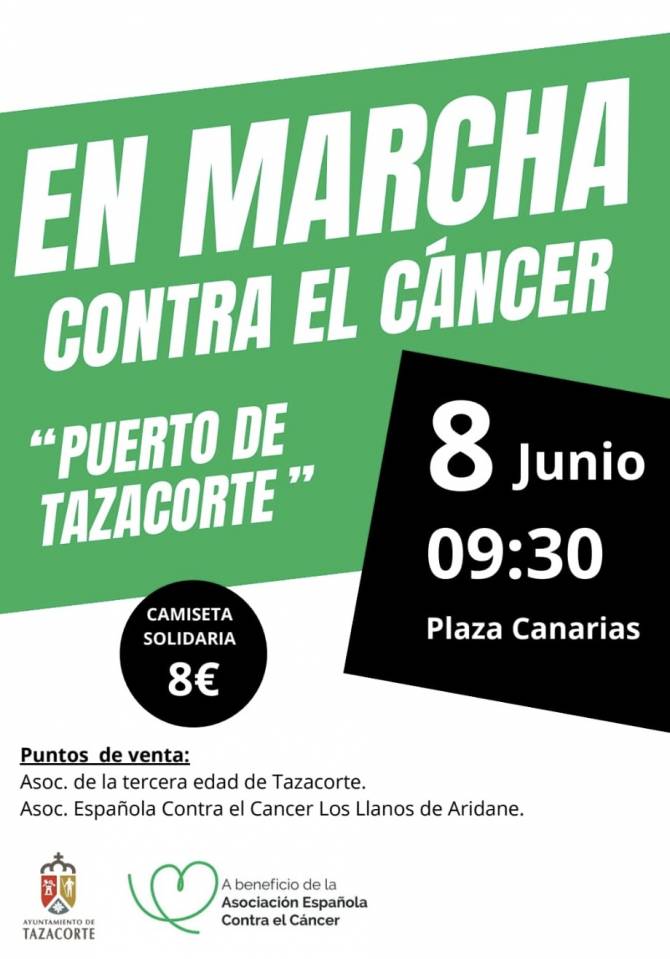 El Puerto de Tazacorte acogerá el próximo 8 de junio a las 9:30 horas en la Plaza Canaria la nueva edición de la ‘Marcha Solidaria Contra el Cáncer’ de la Asociación Española Contra el Cáncer (AECC). El Ayuntamiento de Tazacorte, a través de la concejal de Servicios Sociales Lisi Sánchez, invita a los habitantes del municipio y de la isla a unirse a esta caminata para la recaudación de fondos para la causa.