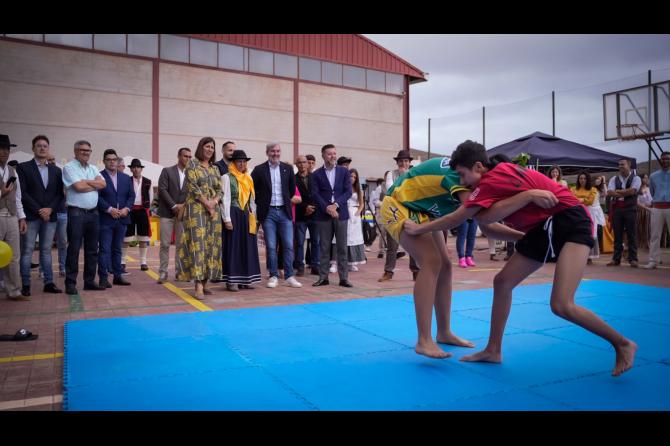 En el acto, el presidente de Canarias fue entrevistado por los estudiantes y además, pudo visitar distintos puestos en el patio del centro organizados por niveles educativos y disfrutar de actuaciones musicales a cargo de grupos de baile del centro, además de representaciones de antiguos oficios y de exhibiciones de deportes autóctonos como la lucha canaria.