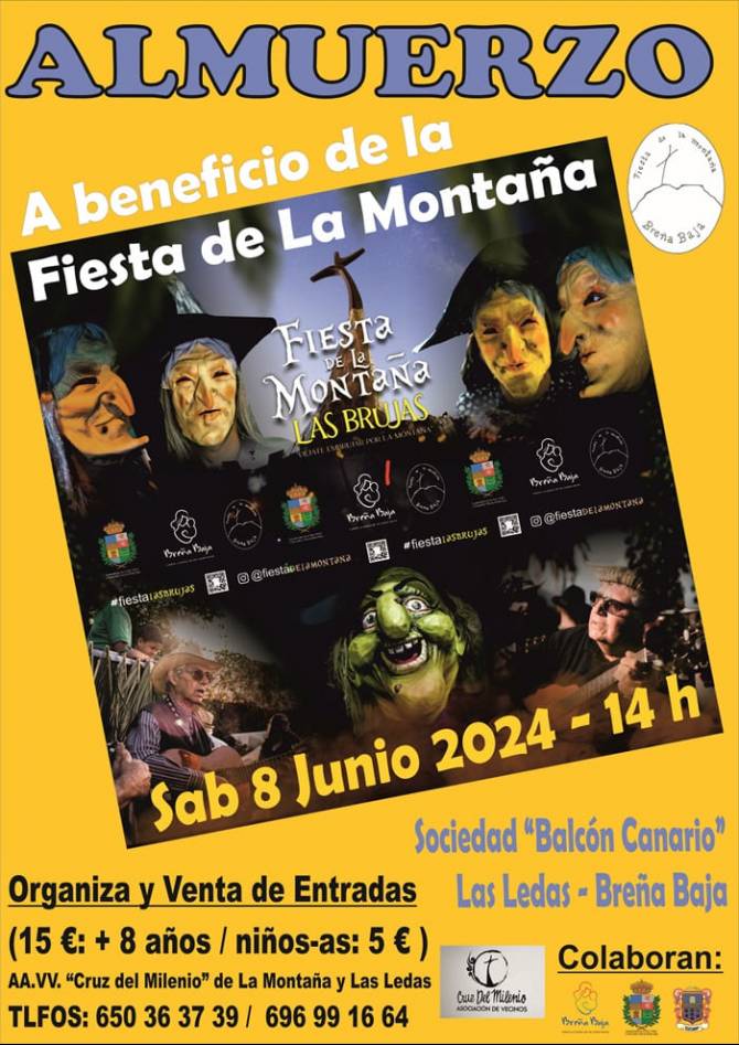 Para el sábado 8 de junio la asociación de vecinos “Cruz del Milenio” de La Montaña y Las Ledas organiza una comida con el objeto de recaudar fondos para la Fiesta de La Montaña del 2024, en la Sociedad “Balcón Canario” de Las Ledas. Comienza a las 14 hs. y habrá grandes sorteos y seguidamente animación musical.