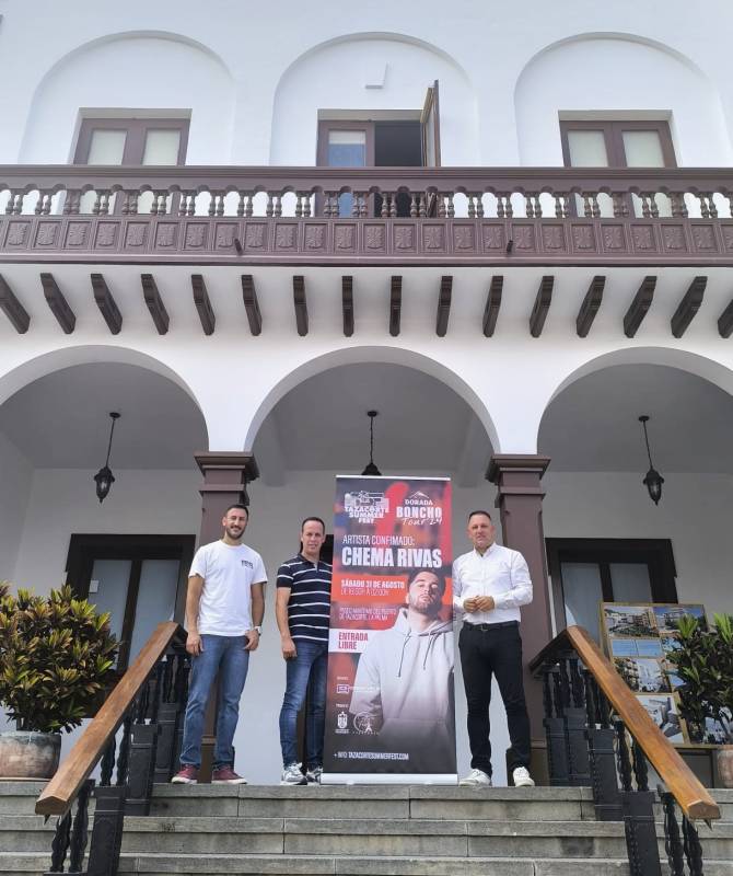 El alcalde de Tazacorte, Manuel González, y el concejal de Cultura, Educación y Fiestas, Yordan Martín, han anunciado este viernes la incorporación de la estrella latina Chema Rivas al cartel Tazacorte Summer Fest, que encabeza el dominicano Henry Méndez con sus clásicos veraniegos. El evento, de entrada libre y con el patrocinio de Cerveza Dorada y su Boncho Tour, será el 31 de agosto de 16:00 a 02:00 y contará con zona gastronómica y muchas más sorpresas.