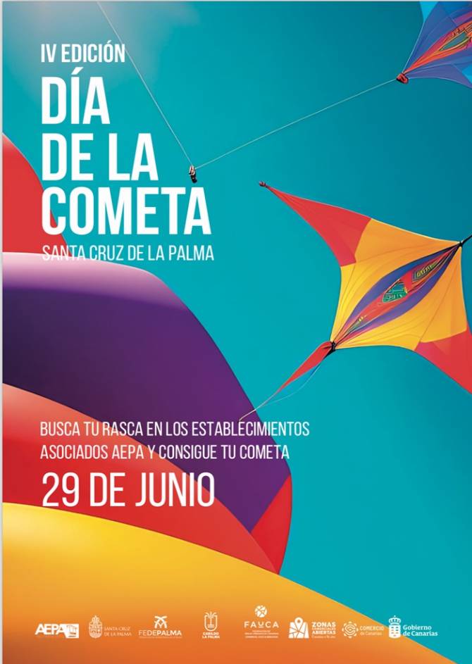 En esta IV Edición, se ha querido aumentar el número de niños, niñas y adultos que puedan obtener unas de estas cometas a través de las compras en todos los establecimientos asociados a AEPA. Solo por realizar sus compras, hasta el 29 de Junio de 2024, recibirán un rasca con la posibilidad de ganar una de las 1000 cometas que tenemos preparadas para que el mismo día 29 de Junio puedan volarla en la playa de Santa Cruz de la Palma y, a la vez, pueden disfrutar de talleres infantiles, colchonetas y música que harán que nuevamente la ciudad se vista de color y música.