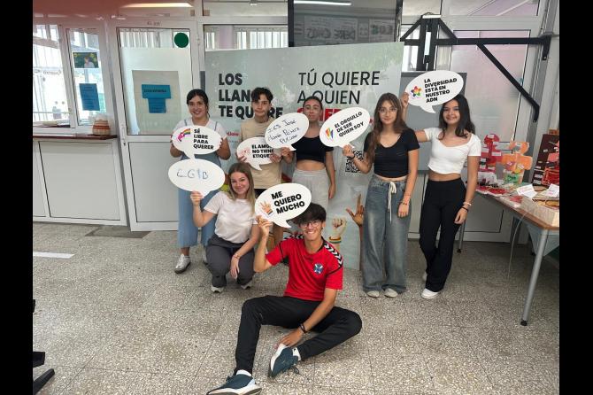 Además, colocaron en los IES un photocall, permitiendo al alumnado identificarse, representarse e informarse. Un photocall que también estará en el municipio y en el que se anima a la ciudadanía a acudir para visibilizar y apoyar el orgullo. Ubicación