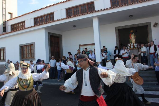 17:00 h. Misa Canaria cantada por la agrupación folclórica “Alfaguara” de Breña Baja. A continuación tradicional Romería en honor a Santiago Apóstol siguiendo el recorrido de costumbre, acompañado por las agrupaciones folclóricas “Alfaguara” de Breña Baja, “Agrupación de Castañuelas” de Breña Alta ,“Agrupación Folclórica La Oliva” de Fuerteventura, “Escuela Municipal de Folclore” de Breña Baja.