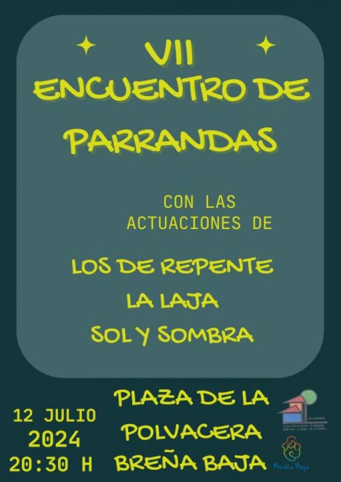 El viernes 12 de julio, 20.30 h, la asociación de vecinos de La Polvacera celebra el séptimo “Encuentro de Parrandas”, en el marco de las Fiestas Copatronales de Santiago Apóstol y Santa Ana 2024, conjuntamente con el Ayuntamiento de Breña Baja.