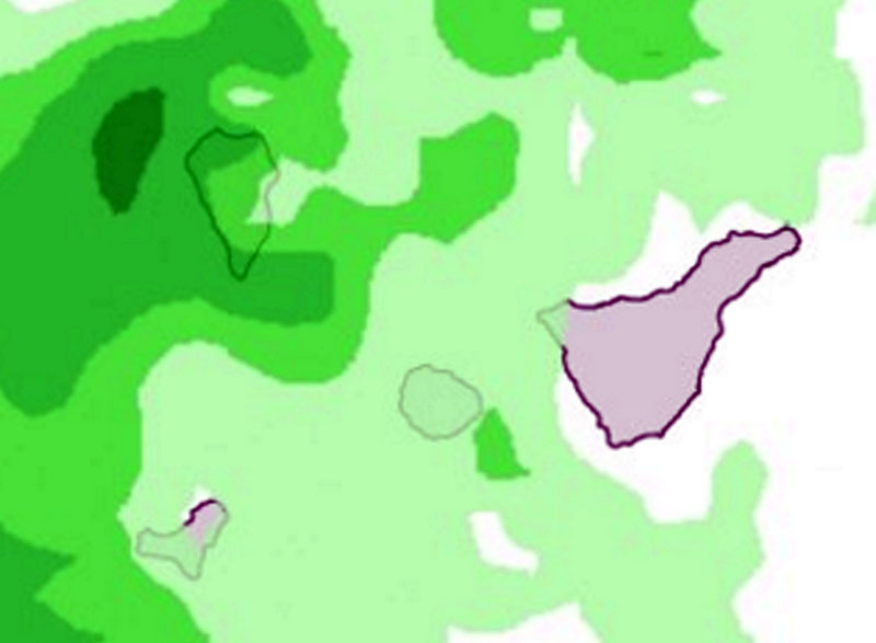 Las previsiones meteorológicas para este domingo apuntan a que la isla registrará cielos nubosos en general, con probabilidad de chubascos débiles a moderados, más probables por la mañana en vertientes Norte y por la tarde en el Sur, donde pueden ser más intensos.