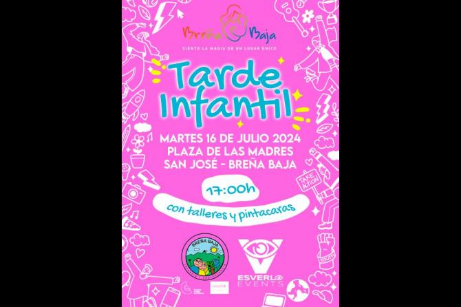 17:00 h. TARDE INFANTIL con talleres y pintacaras a cargo del Órgano de Participación Infantil y Adolescente de Breña Baja y la Asociación Juvenil Esverlo Events.