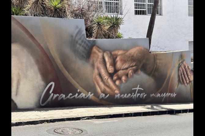 Precisamente "la elección del lugar en el que se ha desarrollado este mural no es casual puesto que justo en este punto se abrirá próximamente un nuevo centro de día para mayores dependientes en la capital palmera, dotando así de mayor contenido y valor a este enclave", explica Antona.