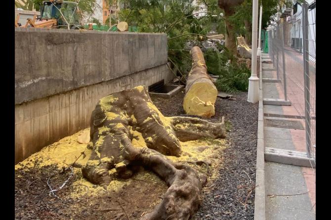 El Grupo Socialista del Ayuntamiento de Los Llanos de Aridane ha mostrado su indignación ante la tala de árboles que ha ordenado el Gobierno municipal de Coalición Canaria y el Partido Popular en el Parque Llano de Alférez, en el marco de las obras que está desarrollando en este espacio céntrico del municipio.