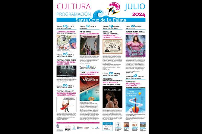 El ayuntamiento de Santa Cruz de La Palma, a través de la concejalía de Cultura dirigida por Alberto Perdomo, continúa con las actividades escénicas y musicales programadas para la segunda quincena de julio con la Joven Orquesta de Canarias como actuación destacada.