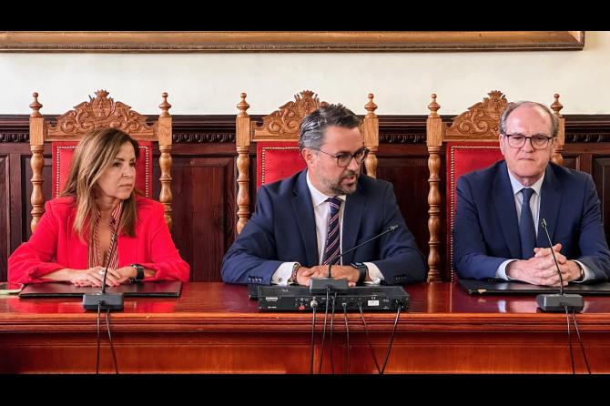 El salón de Plenos del Consistorio capitalino acogió este encuentro donde también estuvieron presentes los portavoces de las formaciones políticas municipales, Juan José Cabrera (PP) y Juan José Neris (PSOE).