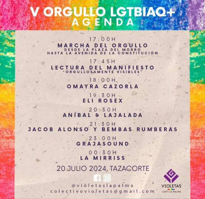 El Ayuntamiento de Tazacorte, a través de la Concejalía de Asuntos Sociales, Bienestar Social y Mujer que dirige Lisi Sánchez, invita al pueblo bagañete a reivindicar este 20 de julio el Día del Orgullo en el municipio, para visibilizar y apoyar a la comunidad LGTBI+.