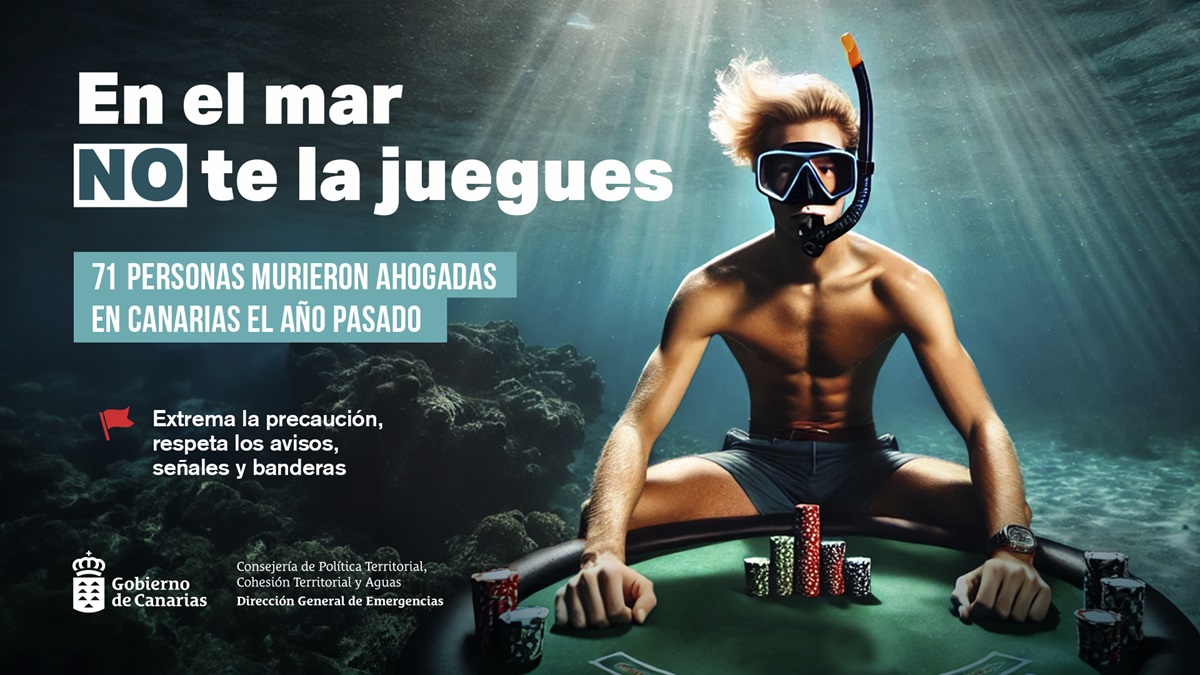 Atendiendo a estas circunstancias en nuestras costas, el Gobierno de Canarias invita a seguir la campaña de concienciación ciudadana “En el mar, no te la juegues”, presentada ayer, destinada a recuperar “el respeto al mar” y reducir las “inasumibles y trágicas” cifras de fallecidos por ahogamiento en las islas, a la que se puede acceder a través de radio y la televisión, redes sociales y prensa digital entre otros soportes.