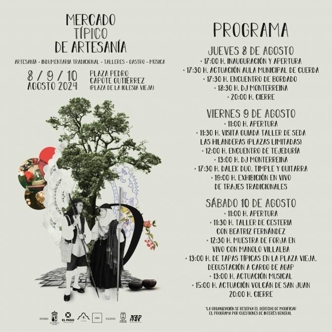 El alcalde, Eloy Martín, afirma que durante esos días “el municipio de El Paso será el epicentro de la artesanía y la tradición, con un programa de actividades para todos los públicos que se combina la degustación de producto local, con la indumentaria tradicional y las artes y oficios de nuestros antecesores”.